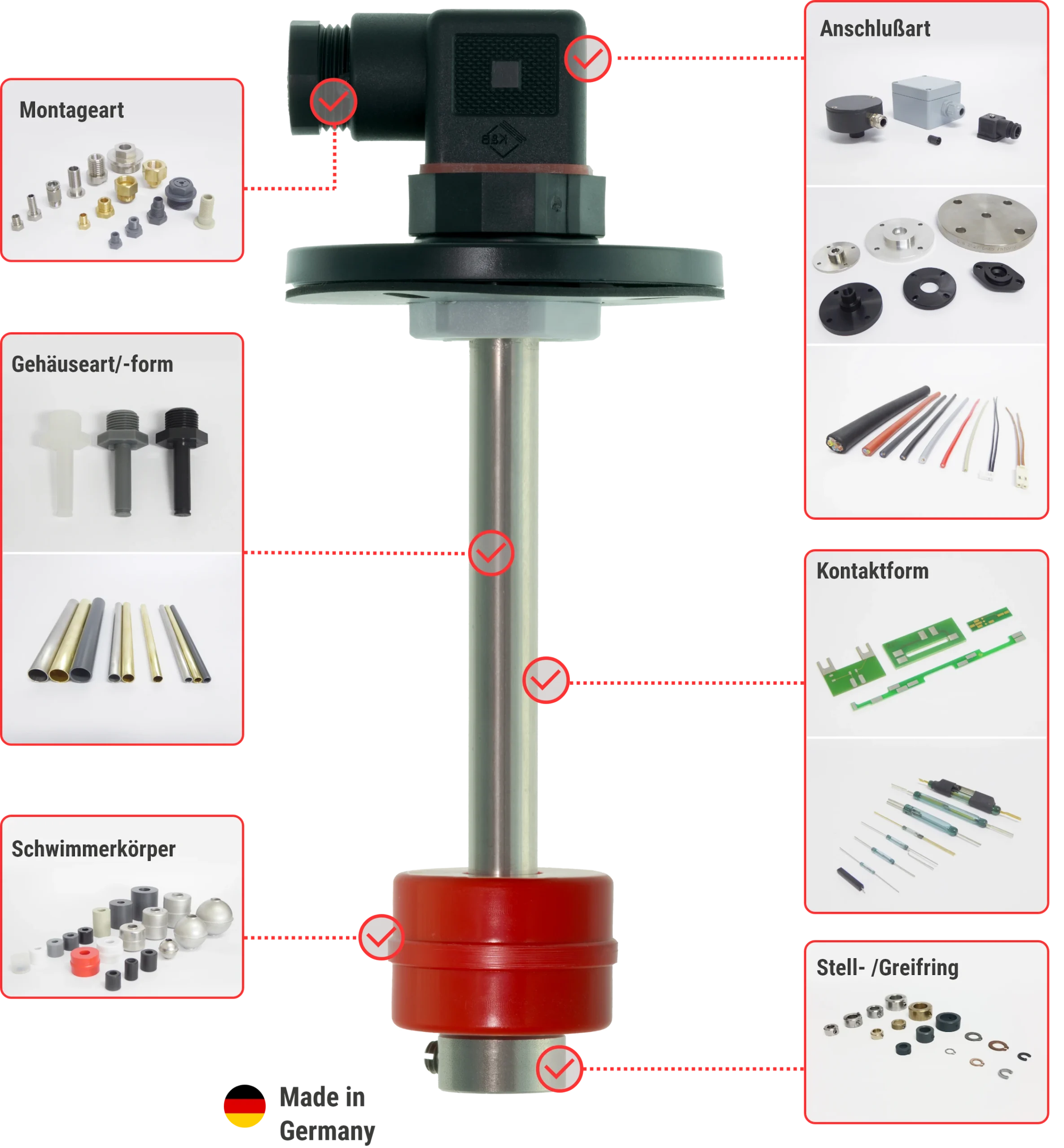 Wenn Standardlösungen nicht ausreichen, beginnt unser Baukastenprinzip. Bei hlm elektronik entwickeln und fertigen wir maßgeschneiderte Schwimmerschalter und Sensoren – individuell konfiguriert, wirtschaftlich produziert und schnell geliefert.
