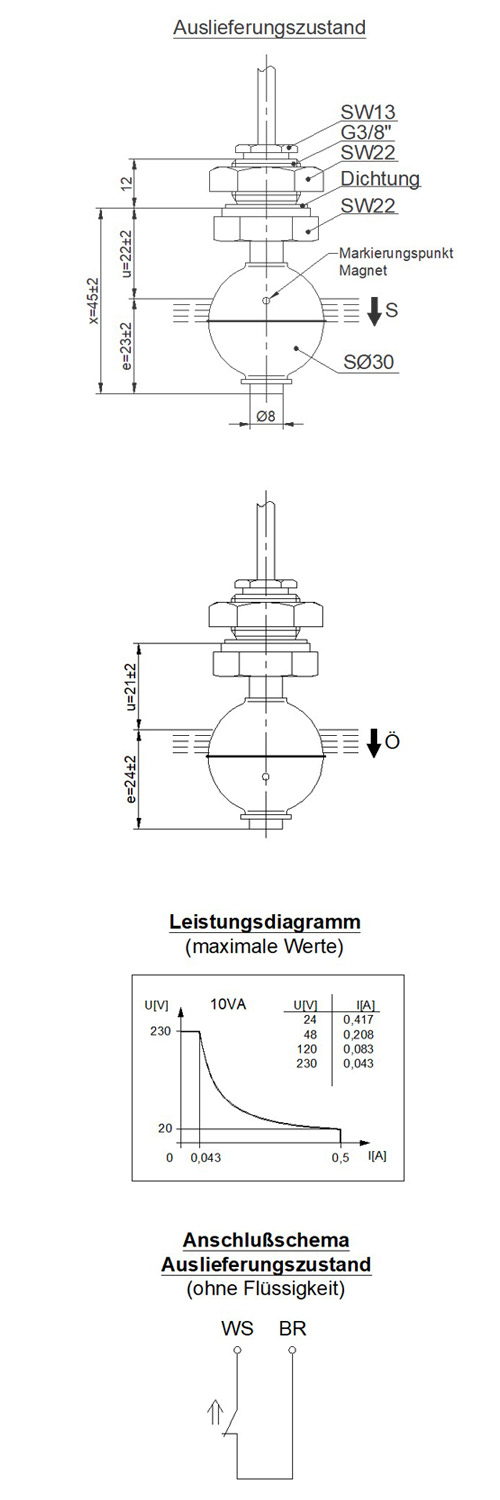 Dieser Miniatur-Schwimmerschalter mit 8 mm Schaltrohr wurde für industrielle Anwendungen entwickelt, bei denen hohe Materialbeständigkeit und präzise Schaltpunkte erforderlich sind. Das Gehäuse aus Edelstahl 1.4571 und der Schwimmer aus 1.4301 ermöglichen den Einsatz in anspruchsvollen Medien sowie unter erhöhtem Druck. Die zuverlässige Reed-Technik arbeitet stromlos im Ruhezustand und gewährleistet eine langlebige, störungsarme Grenzstandserfassung. Die vertikale Montage erfolgt über eine kombinierte M12x1 / G3/8-Innengewindelösung, die eine flexible und dichte Installation in unterschiedlichen Gehäuse- und Behältertypen ermöglicht.